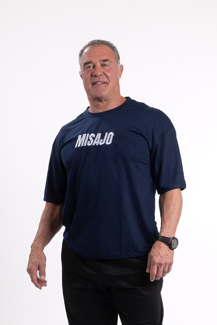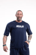 The Chad T is a classic deep navy t-shirt made from soft, breathable t-shirt material. Features the bold MISAJO logo on the front. Comfortable, versatile, and perfect for workouts, lounging, or everyday wear.