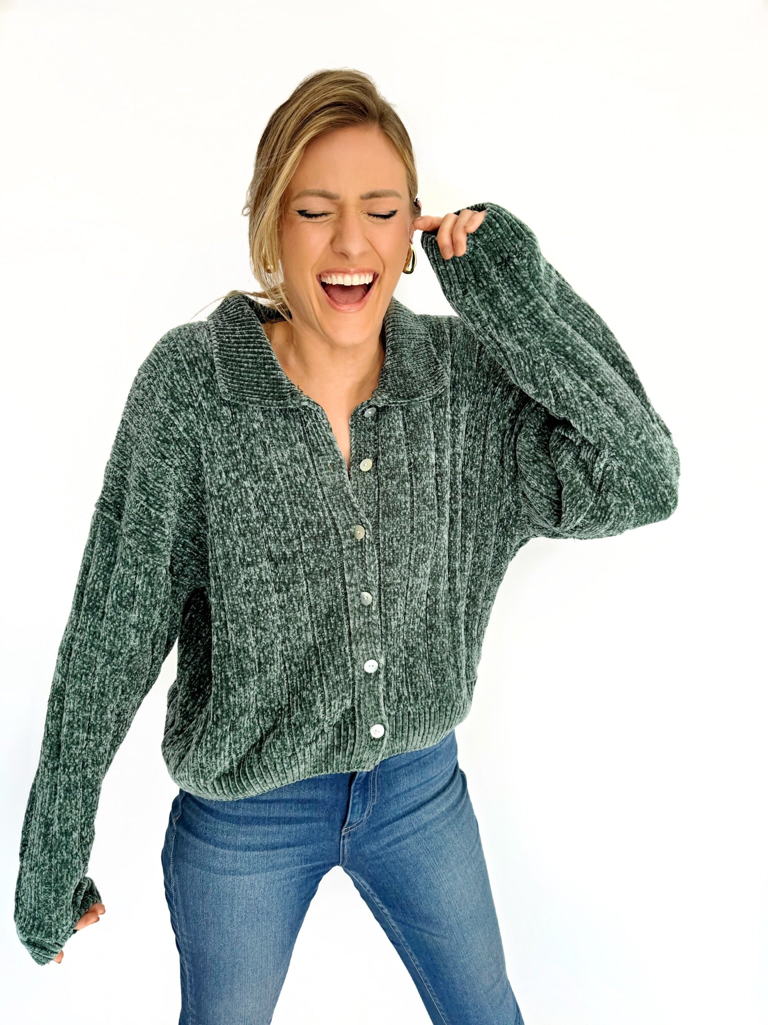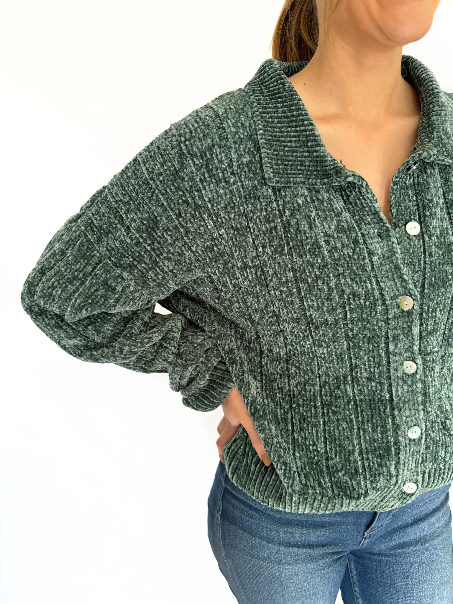 This French Cardigan pullover is perfect for cool weather. Crafted from ultra-soft fabric, its elegant green color is styled with a button-down design for an effortless look. Cozy yet stylish, this cardigan is sure to become a wardrobe staple.