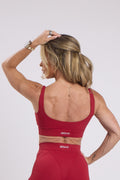 This stunning wine-red sports bra crafted in a smooth, flattering performance fabric. Designed with elegant front stitching that adds shape and subtle contouring, it offers a beautifully elevated athletic look—perfect for training, pilates, or everyday movement.