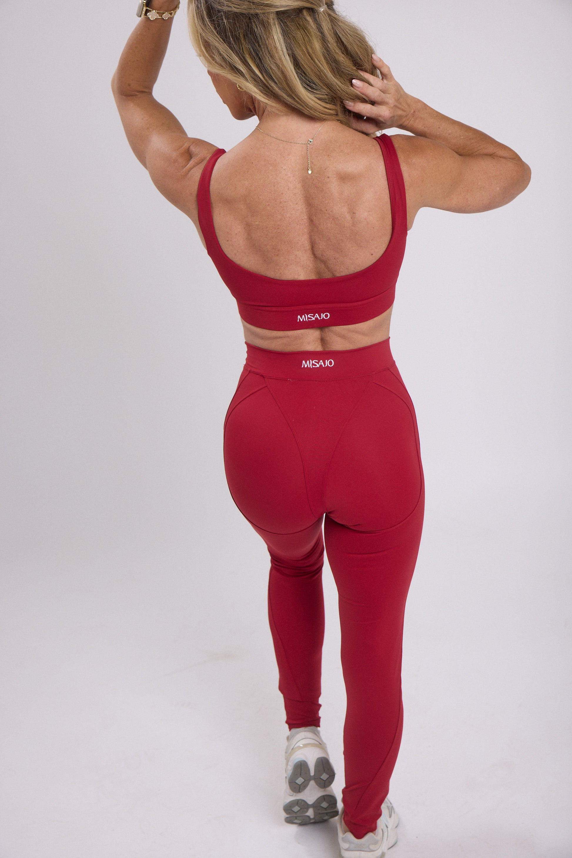 Soft, sculpting, and undeniably flattering. These wine-red leggings feature a sleek contour-seam design in the front and back that creates the illusion of a lifted, defined shape—similar to a thong outline effect, but fully built into the stitching. The result is a bold, modern look that enhances your curves, adds edge, and makes you feel incredible during any workout or athleisure moment.