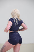 Make a statement with the MISAJO Kelby Duo in Textured Navy, a daring activewear set crafted for high performance and a sculpted silhouette. The short-sleeve crop top offers solid core support, while the seamless shorts lift and shape for a confident, powerful look. Its distinctive textured fabric delivers a premium feel with lasting durability and stretch. Move freely and command attention whether at the gym or on the move with this bold MISAJO essential. Benefits include a body-flattering fit, eye-catching texture, unrestricted mobility, breathable comfort, and signature MISAJO branding on the shorts.