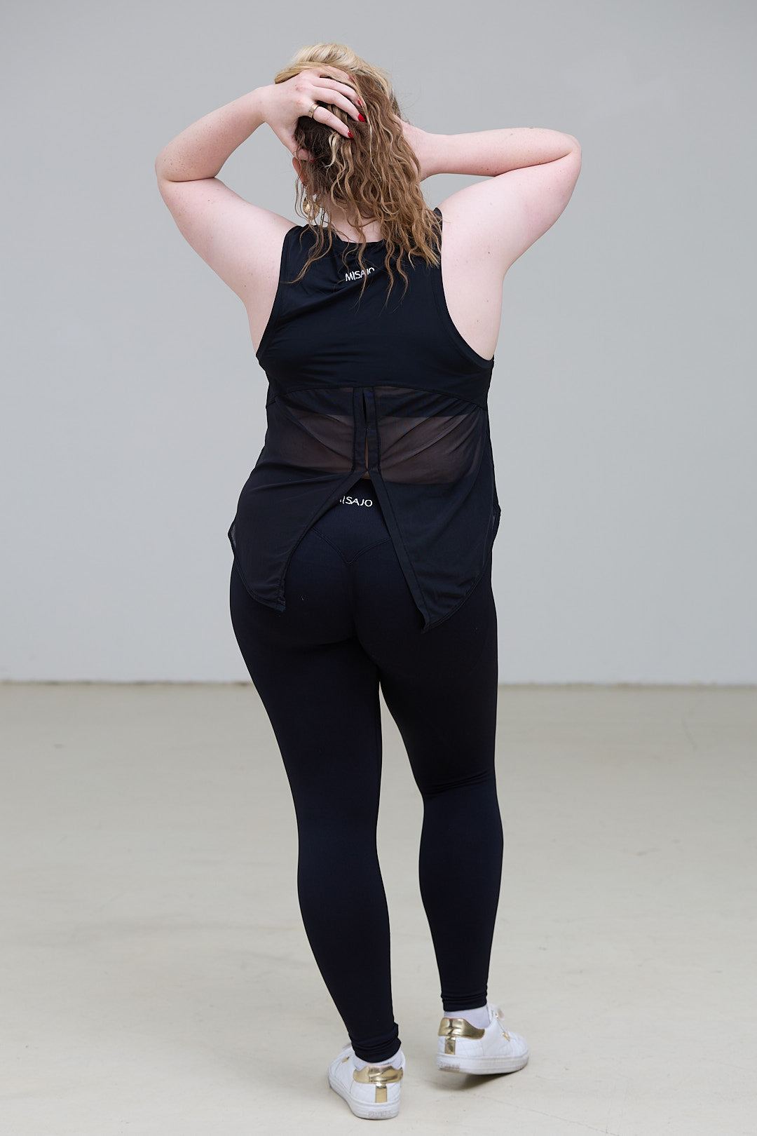 Upgrade your activewear with the MISAJO Nechama Tank Top in Classic Black. Featuring a daring slit at the back, this breathable mesh tank combines style and comfort effortlessly. Perfect for intense gym sessions or casual days on the move, its soft, flexible fabric keeps you confident and cool wherever you go.