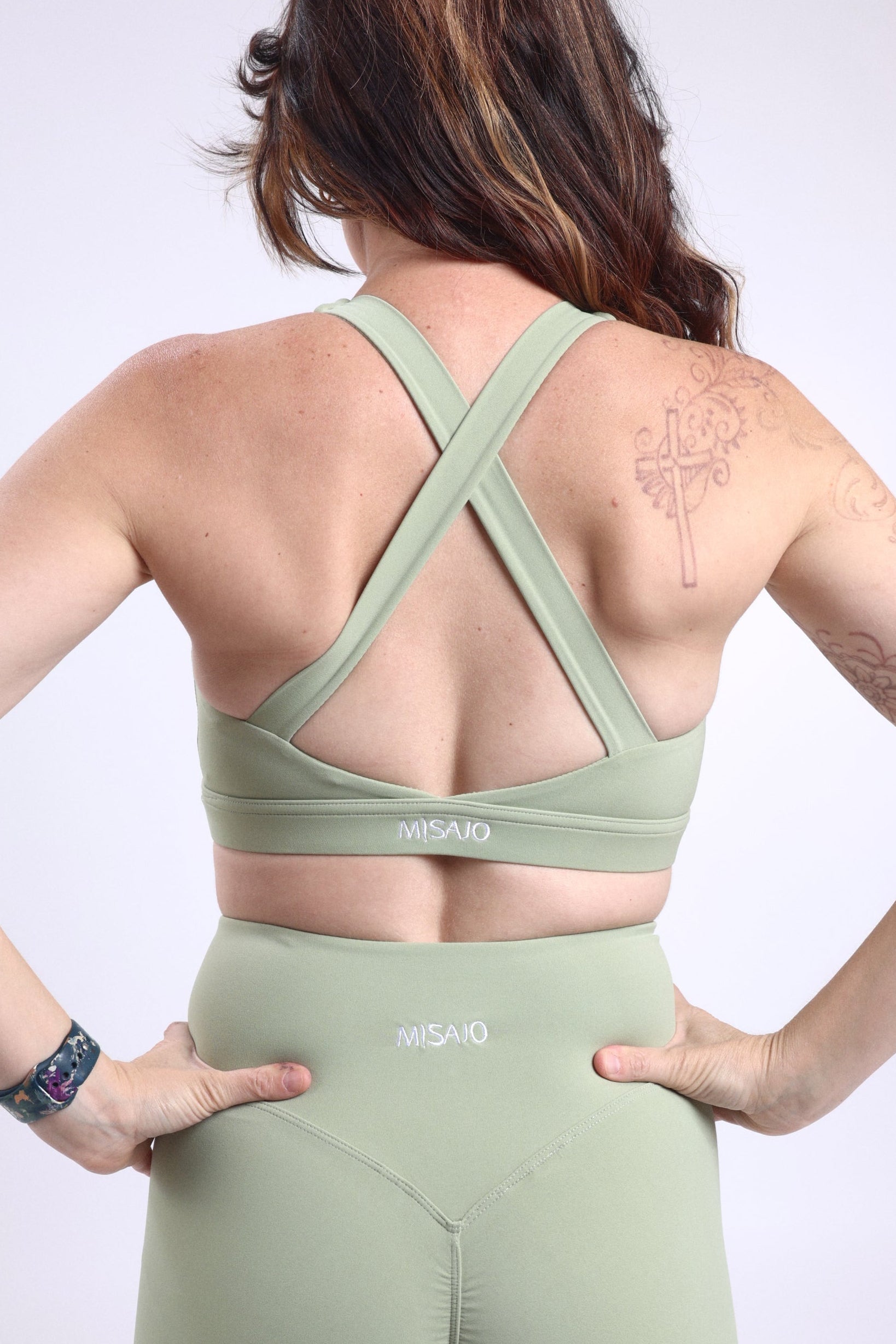 Buttery-soft in a beautiful pistachio hue, this classic cropped sports bra hits just under the bust and features a stylish X-back design. Lightweight, comfortable, and perfect for all your workouts.