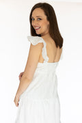 Fall head over heels in love with the Province Midi Dress! This romantic piece features an off white flowy fabric, a v neckline, and beautiful ruffled sleeves. Get ready to swoon!