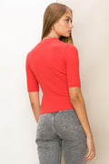 Stylish yet versatile, the Red Turtleneck is the perfect addition to any wardrobe. Its short sleeves offer a modern twist to the classic turtleneck design, making it a must-have for any fashion-forward individual.