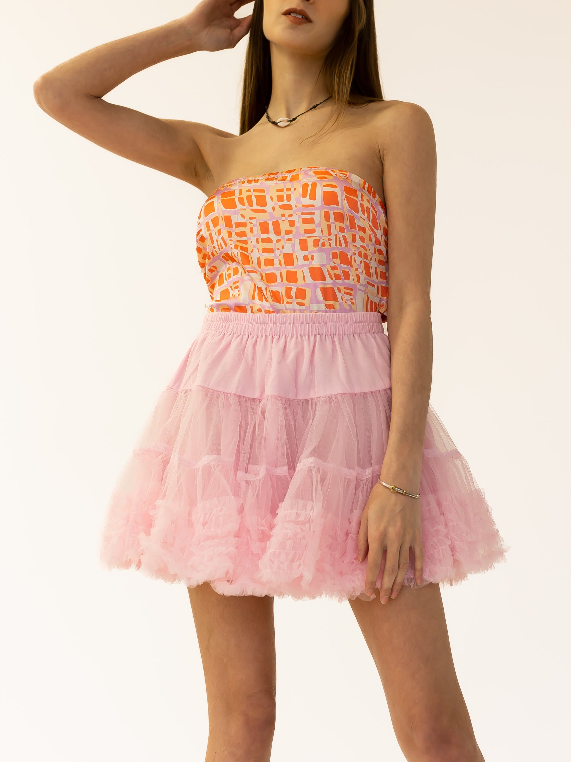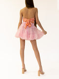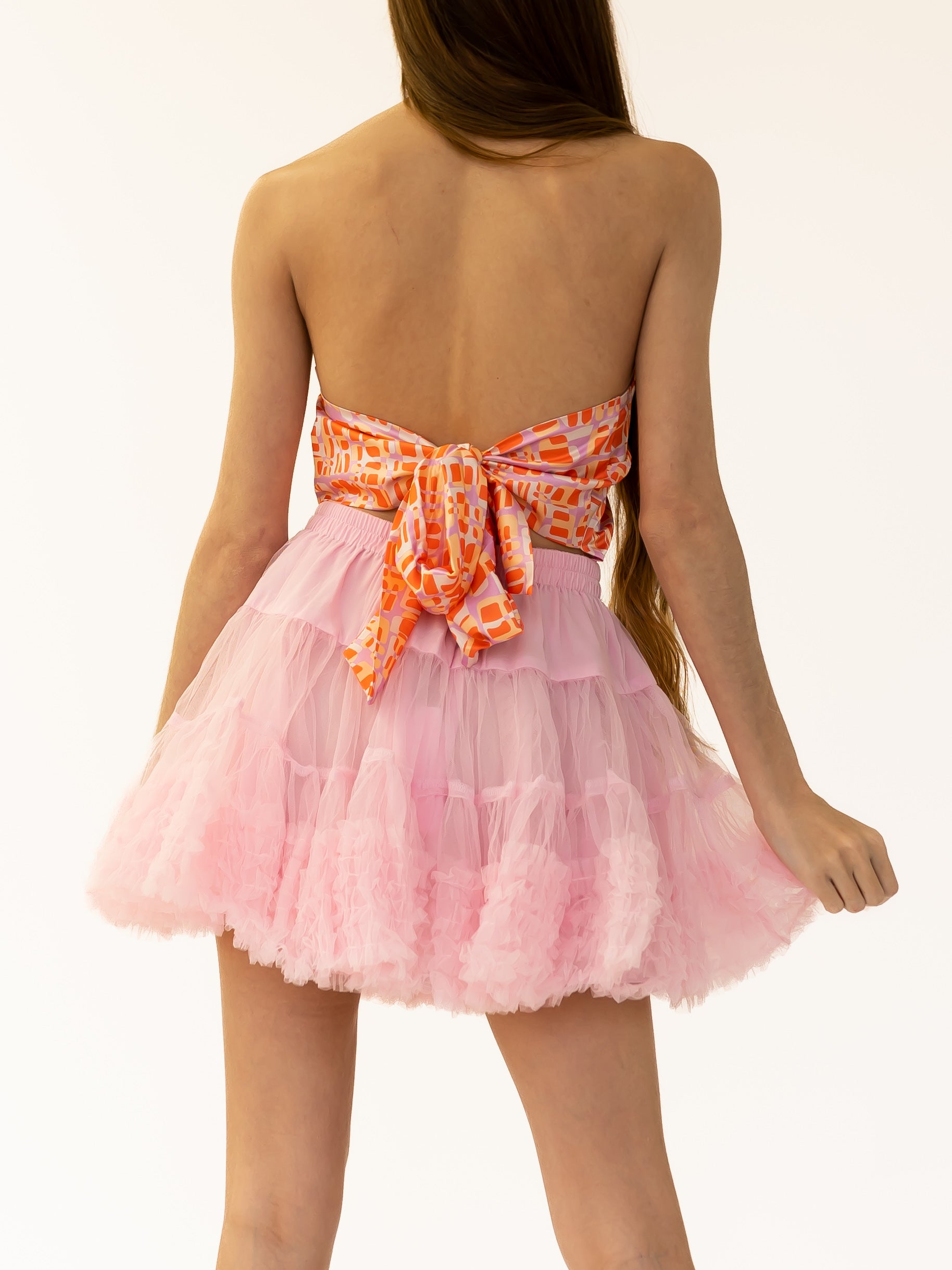 Crafted with sophistication, the Papaya-hued back-tied triangle bandeau top is sure to make a luxe statement.