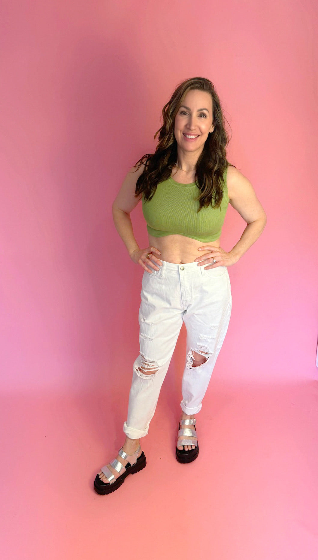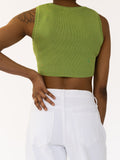 Crafted from a lightweight, knit fabric, this elegant Amazon Green crop top features a chic silhouette and luxurious texture.